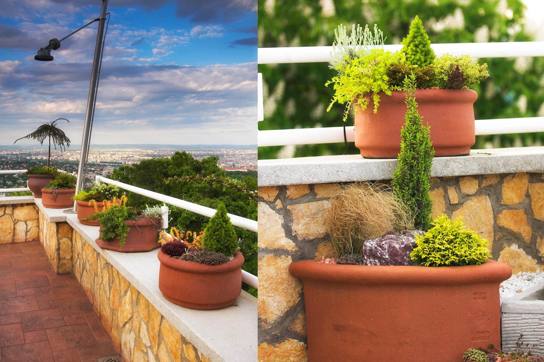 Ha klasszikus kert helyett csak egy terasznyi hely áll rendelkezésére, akkor sem kell lemondania a kert örömei- röl. Modern technikával és odaillö növényegyüttes össze- válogatásával harmonikus kompozíciót állíthatunk össze.
